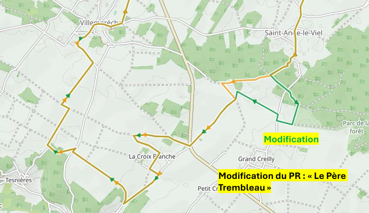 Modification (en vert) du PR "le Père Trembleau" suite à chemin impraticable et chemin privé.