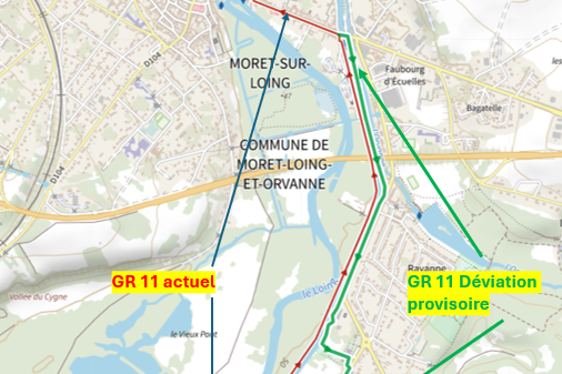 Le pont pour cause de vétusté à été détruit par la SNCF. Une déviation définitive du tracé de 1 km a été créée et balisée en empruntant une route départementale à faible circulation et un nouveau sentier créé côté de la butte aux bergers.